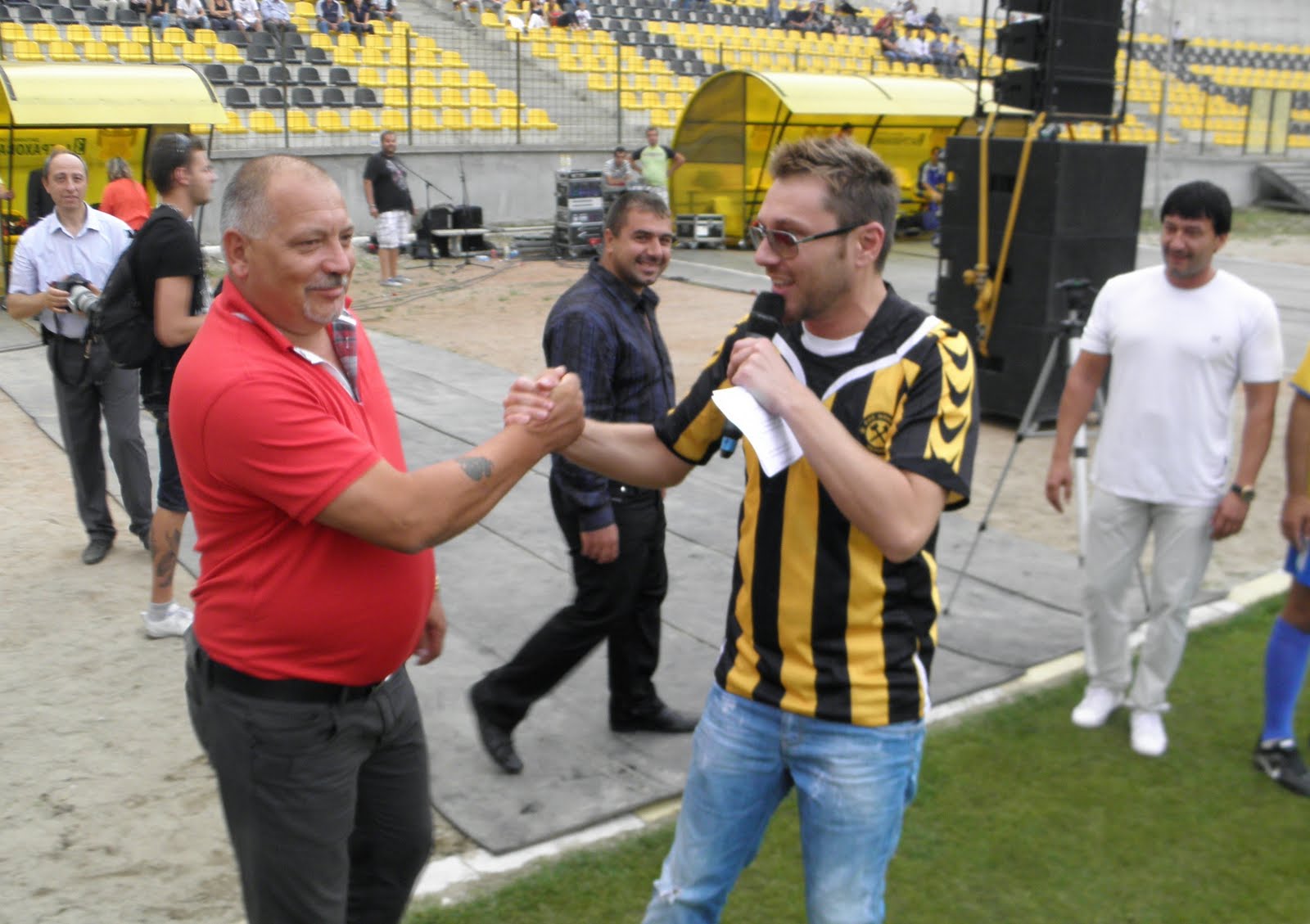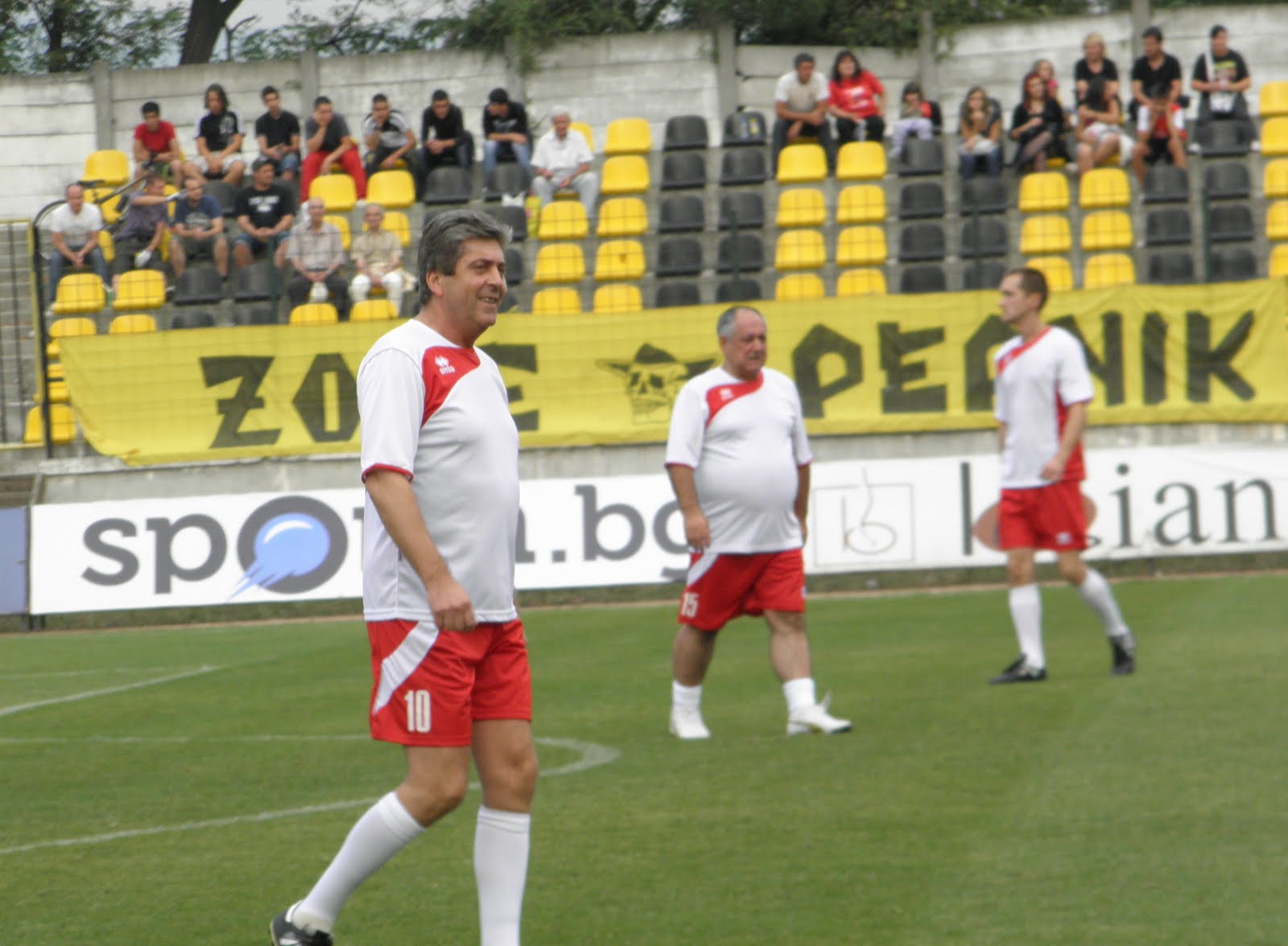 В края на втория си мандат от своя престой в президентството Георги Първанов реши да направи нещо за родния си Перник. На Стадиона на мира, който първо се казвал така, а сега официално е "Миньор", но старото му име все по-често се употребява, доведе свой отбор и гарнитура на дипломатическия корпус. Държавният глава си организира футболен мач, който беше наречен благотворителен. Първият гол вкара първата минута известният в близкото минало футболист на Миньор Георги Йорданов - Ярето. Подставени лица участваха в режисиран търг за фланелката на президента и Киро Змейо я откупи за 5 000 лв. Коментатор на мача беше Тити Папазов и той успя да направи шоу. Събитието беше използвано и като предизборен PR на кандидата за президент на БСП и на Първанов Ивайло Калфин.